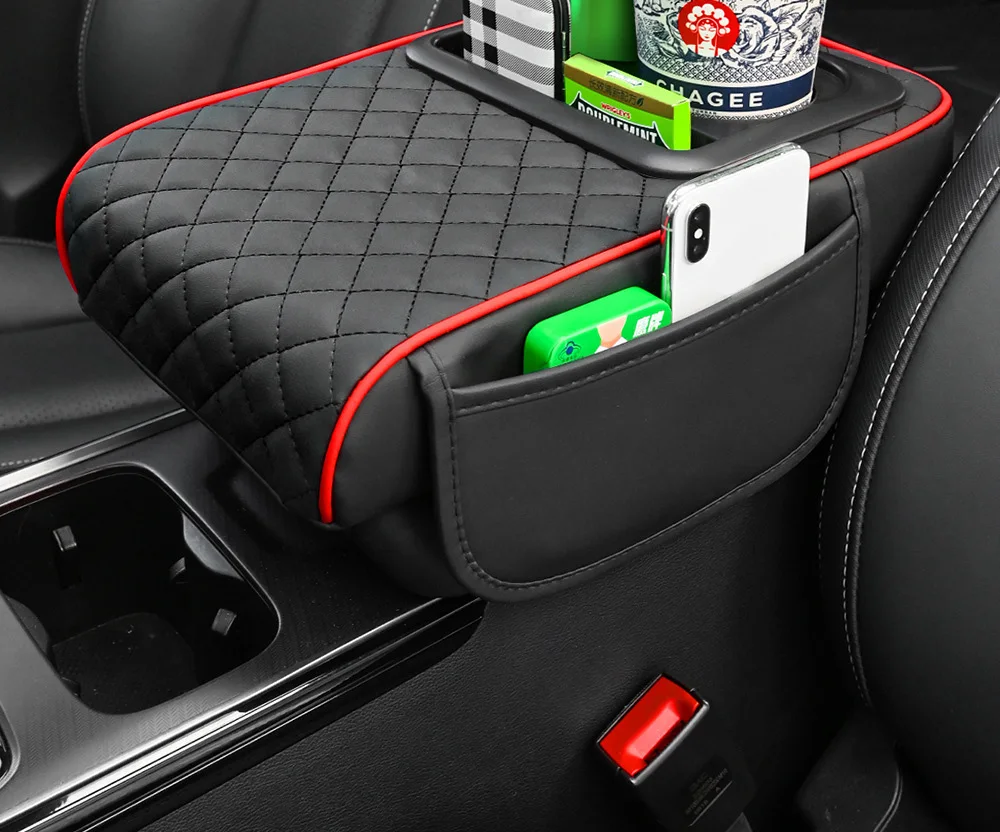 Car Armrest Mat Center Console Memory Foam Vehicle Arm Rest Tissue Boxes Pads PU Leather Protection Cushion Storage Pocket
