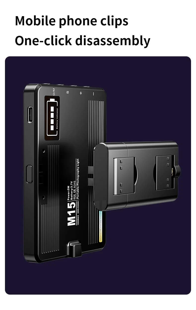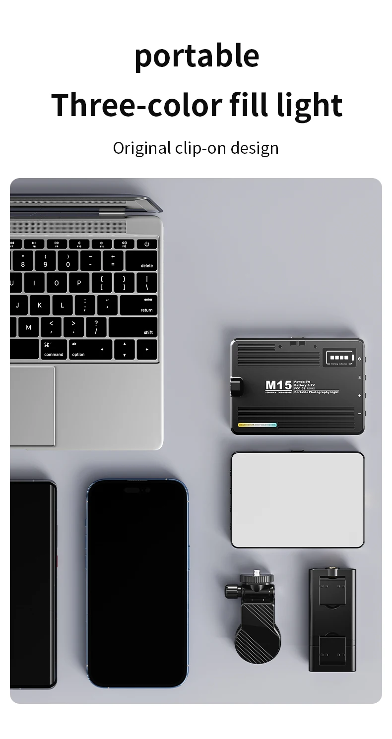 M15 Phone Selfie Fill Light Portable Pocket Beauty Photo Lamp with Phone Holder for Video Recording Vlog Shoot Fill Studio Lamp